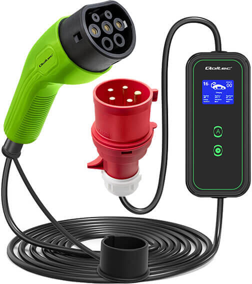 Qoltec Elektromos autó töltő Állítható töltőárammal 2in1 Type2 11kW CEE 5 PIN LCD 3 fázis Hordozható 5m
